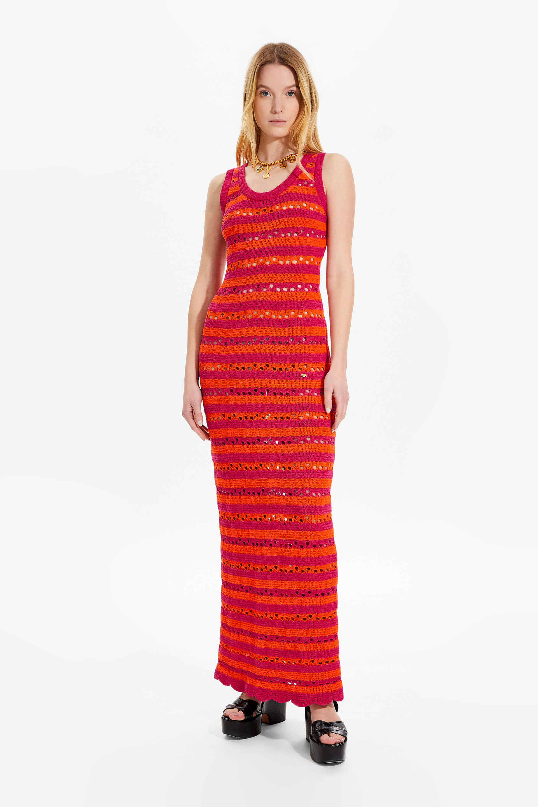 Sonia Rykiel embodies the perfect harmony between elegance and comfort th...rough its collection of long dresses. Whether you're seduced by the delicacy of knitwear or drawn to the lightness of cotton, Sonia Rykiel offers a variety of luxurious long dresses that sublimate the silhouette with exceptional refinement, whether for a casual day or a chic evening. Among the must-have pieces in this collection are dresses with sequins, lace or even striped maxi dresses, giving your wardrobe an iconic touch.